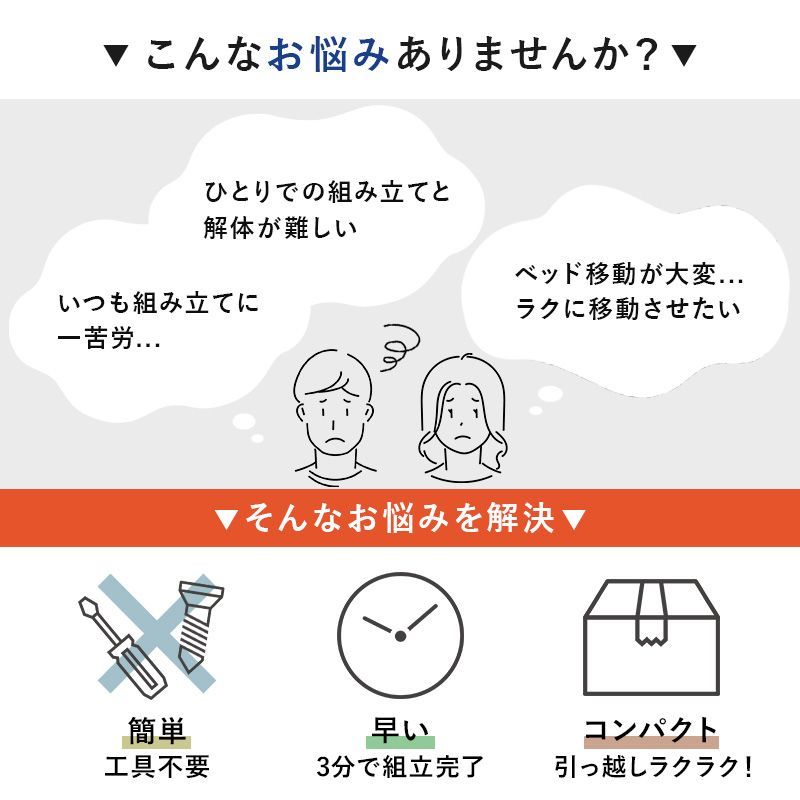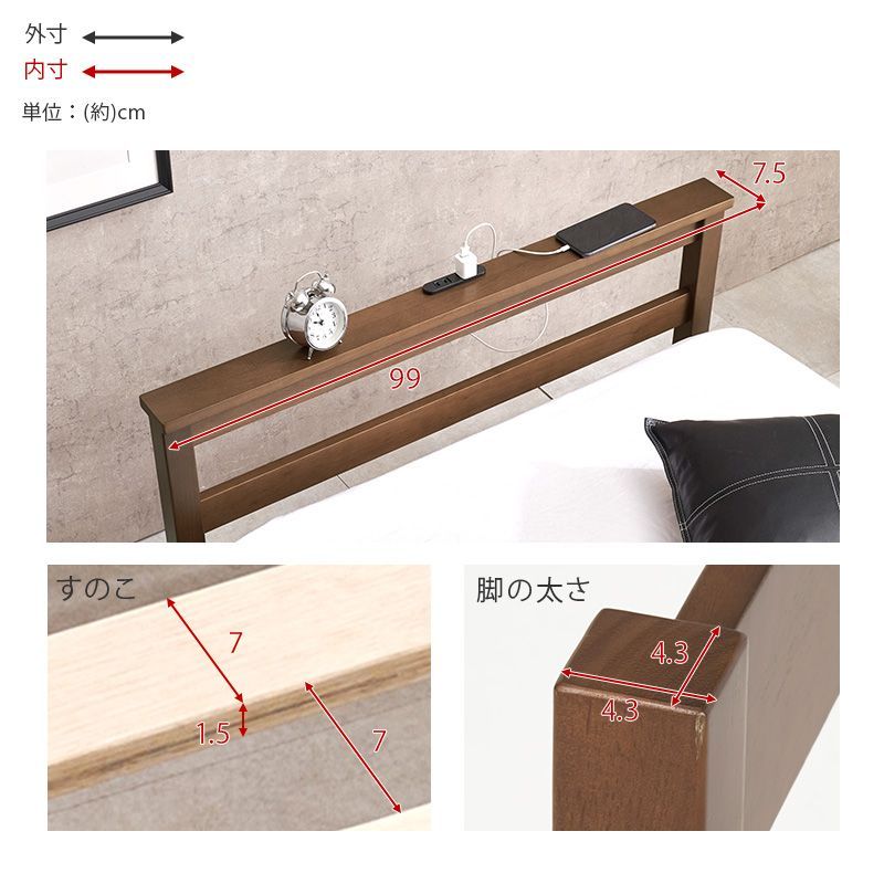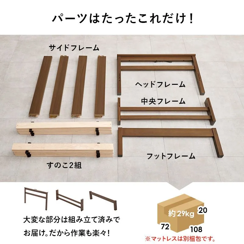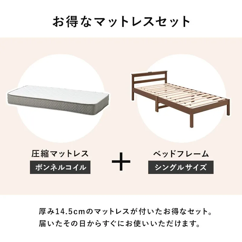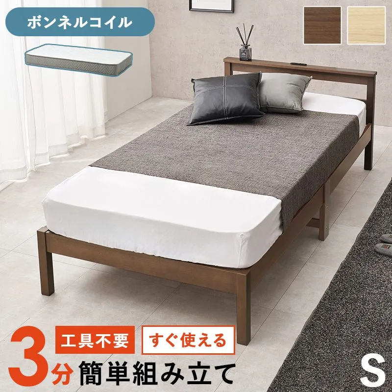 【商品説明】 ネジなし、工具不要で簡単組立。お部屋に馴染むシンプルなデザインの宮棚とコンセント付きベッド。安定感のある寝心地のボンネルコイルマットレスセット