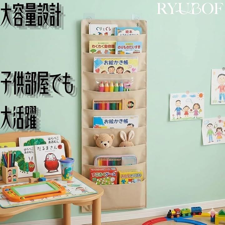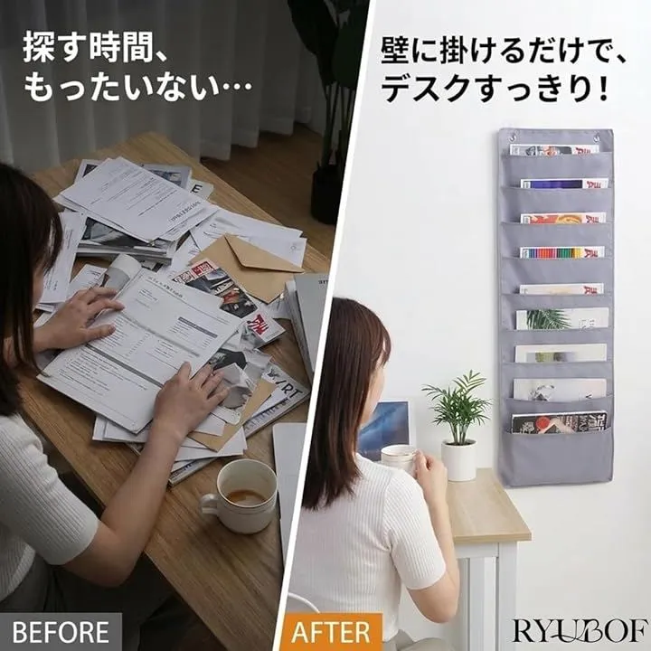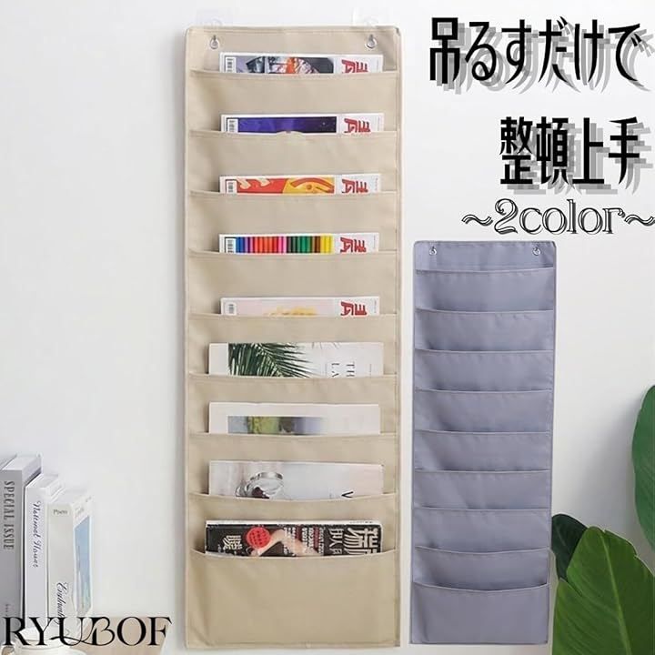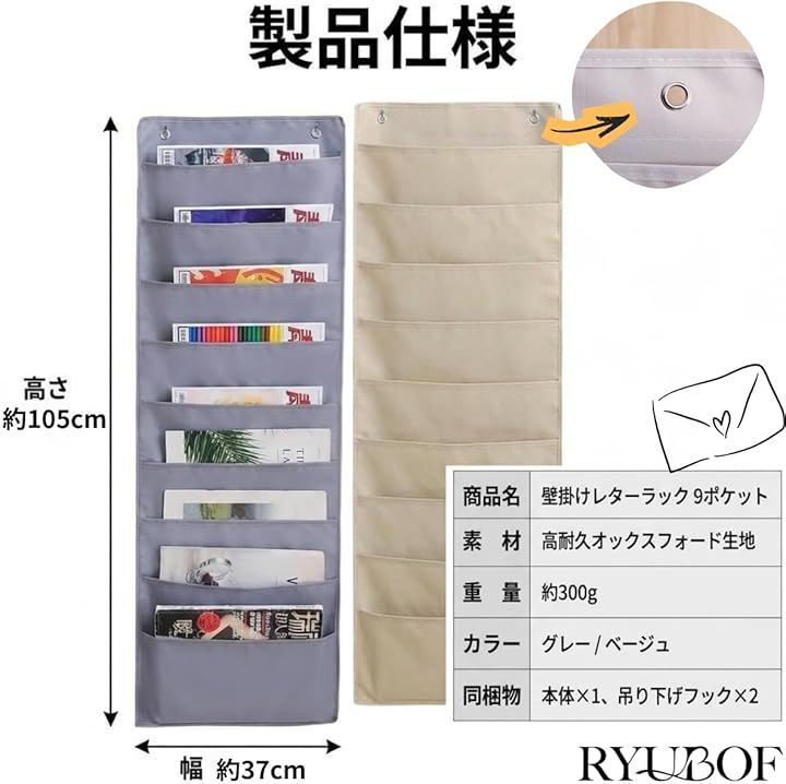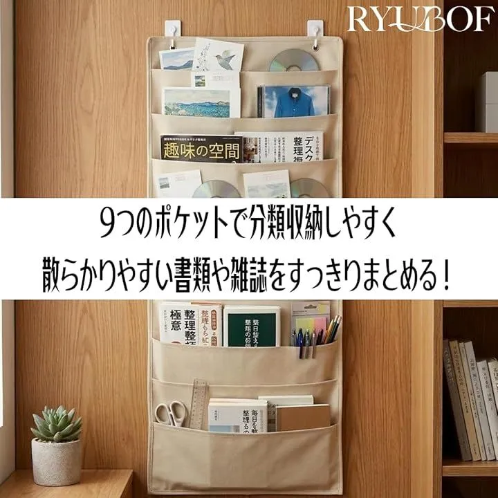 Ryubof レターラック 壁掛け 書類 壁掛けレターラック レターケース ウォールポケット A4対応 9ポケット 吊り下げ 書類収納 雑誌 漫画 封筒 整理整頓 布製 (ベージュ)