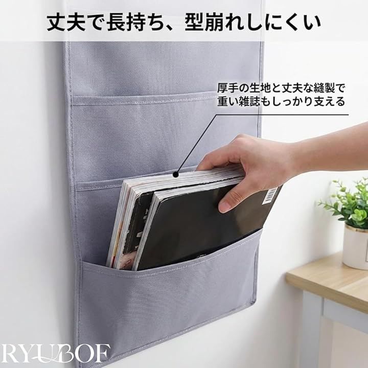 「見た目も美しい壁掛けポケット」壁掛け式で床を塞がず省スペースに使え、落ち着いたグレーカラーがどんな空間にも馴染み、家庭やオフィスでも自然で上品な収納を演出します。