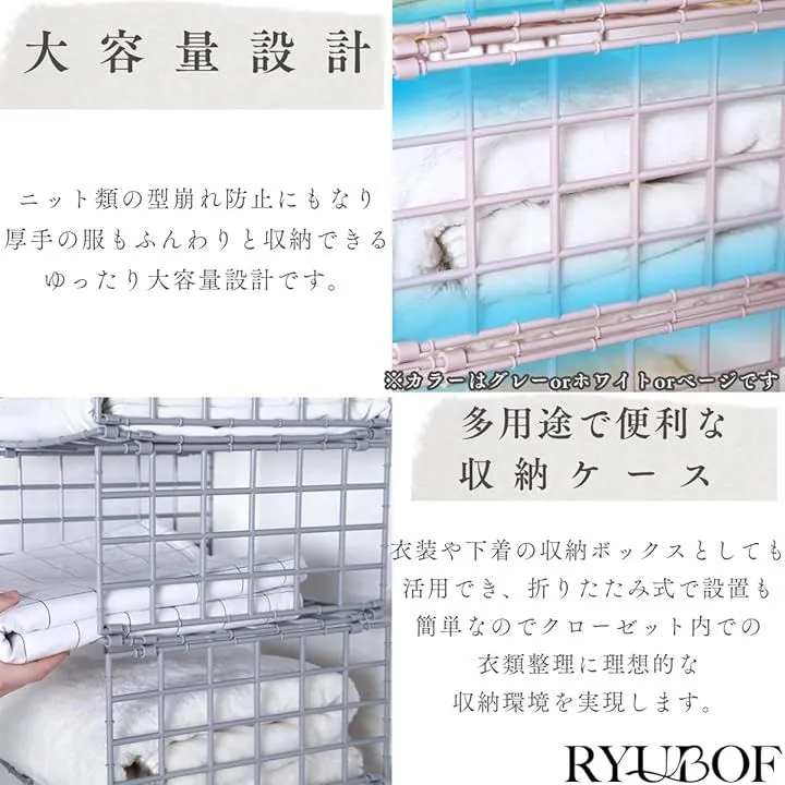 「多用途で便利な収納ケース」衣装や下着の収納ボックスとしても活用でき、折りたたみ式で設置も簡単なのでクローゼット内での衣類整理に理想的な収納環境を実現します。