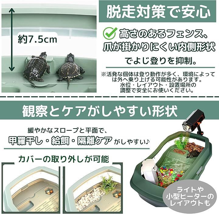 East Leaf 亀 水槽 飼育ケース 蓋付き 脱走防止 清掃 簡単 3層構造 幅35cm プラスチック (緑)