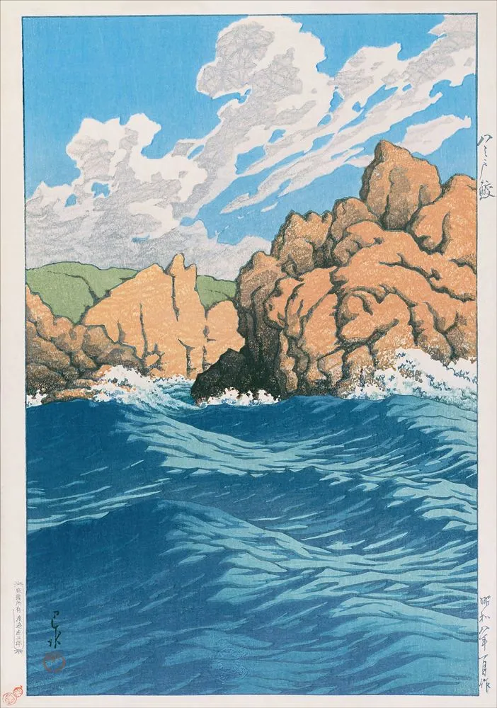 ■ 作品名:日本風景集 東日本篇 八之戸鮫(晴天)(複製印刷ポスター) 雨のバージョンも出品しています。 商品画像は1枚目。 2枚目以降は部分的に拡大した参考画像です。