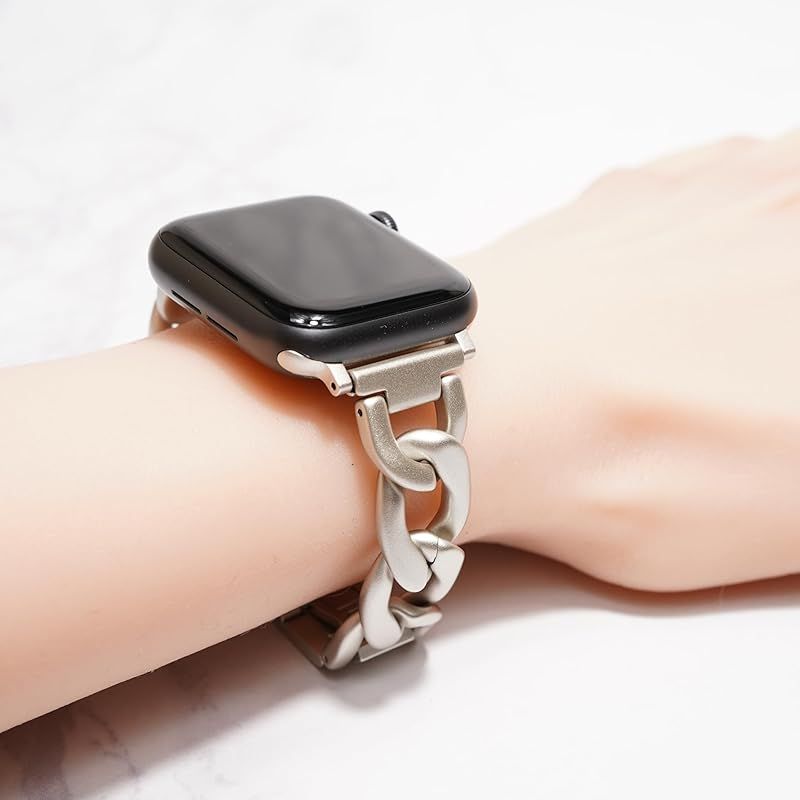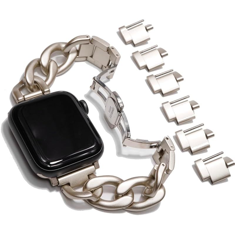 【全機種対応】対応機種:Apple Watch Series 11 , 10 , 9 , 8 , 7 , 6 , 5 , 4 , SE ,Ultra 3.2.1 /サイズ:40 . 41 . 42 . 44 . 45 . 46 . 49mm対応 / ご希望のサイズをお選びください。 / 付属品:輸送用ボックス、コマ調整説明書 ※アップルウォッチ本体は付属しません。※ゴールドカラー、ピンクゴールドカラーはチェーンが重なり合う部位は塗装が薄れシルバーに近い色味となりますが、不良品ではございません。装着時には露出しない部位となります。コマ調整の際は、コマサイドのパーツを真っ直ぐ引き出し回転させて下さい。