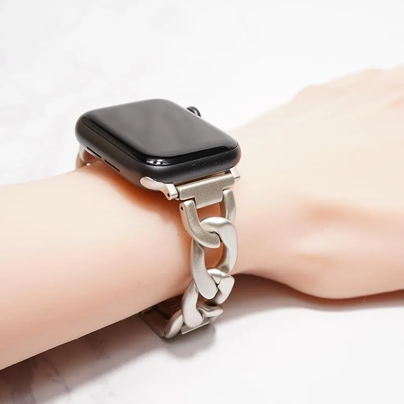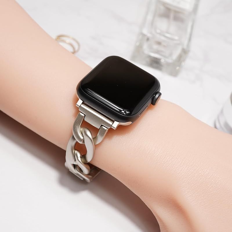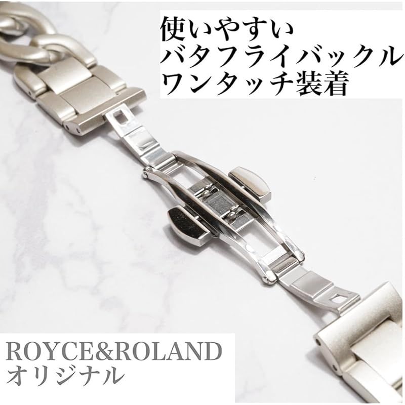 Royce&Roland Apple watch チェーンバンド バタフライバックル おしゃれ アップルウォッチ 時計 バンド (ステンレス/シルバー) レディース メンズ ギフト プレゼント (44mm 45mm 46mm 49mm, スターライト) 0