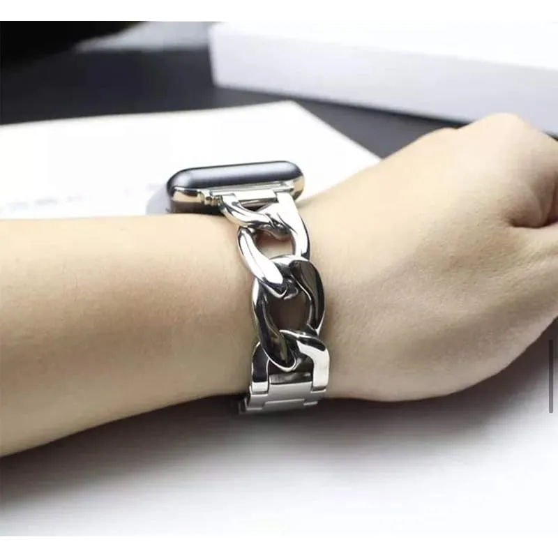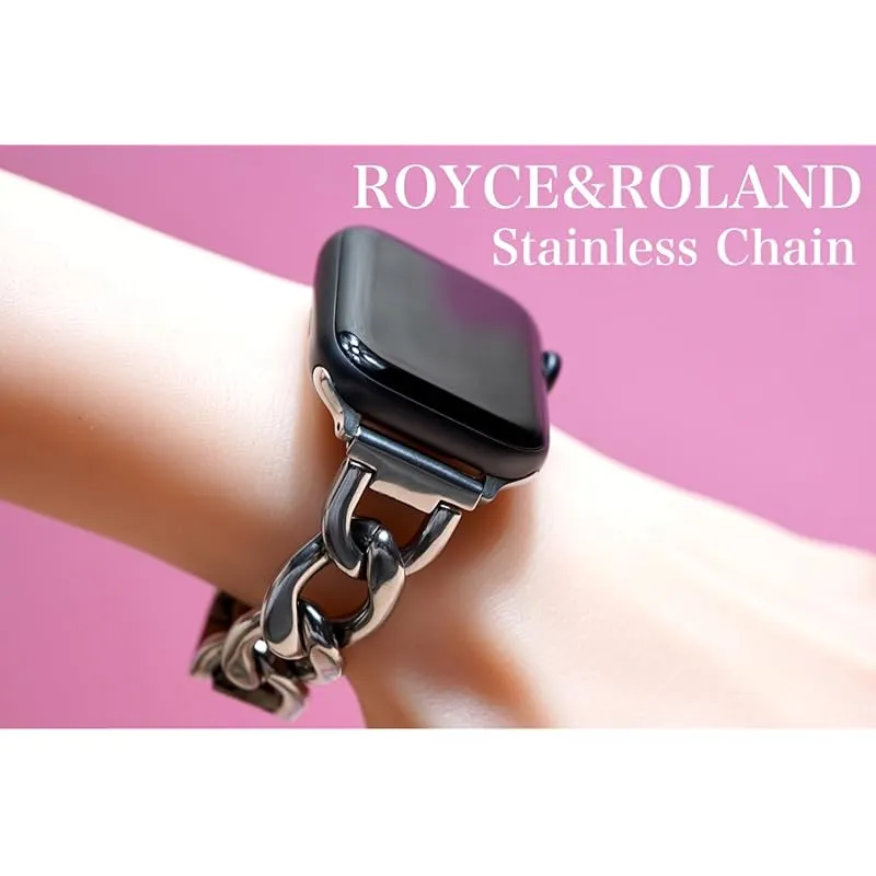 Royce&Roland Apple watch 高級 チェーンバンド/バタフライバックル (44mm 45mm 46mm 49mm) おしゃれ アップルウォッチ バンド ベルト/ステンレス シルバー (Series 11 10 9 8 7 6 5 4 S 1
