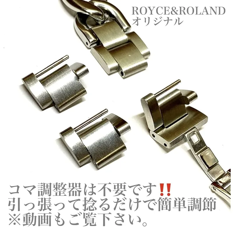 【簡単にサイズ調整可能】工具不要で、コマを引っ張って捻るだけで簡単に調節が出来きます。ベルトの裏面を矢印の方向へコマを引っ張り、回転させることでコマが外れます。※取り扱い説明書付き、ROYCE&ROLANDオリジナル製品です。正規品は販売元がROYCE&ROLANDのみとなりますのでご注意ください。