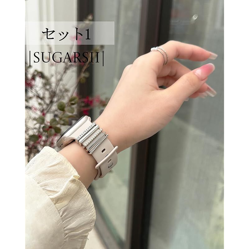 [SUGARSII] アップルウォッチ アクセサリー キラキラ 華やか かわいい レディース パール ジルコニア ハート 蝶 花 Apple Watch チャーム 38mm 40mm 41mm 42mm 44mm 45mm 46mm 49mm 1