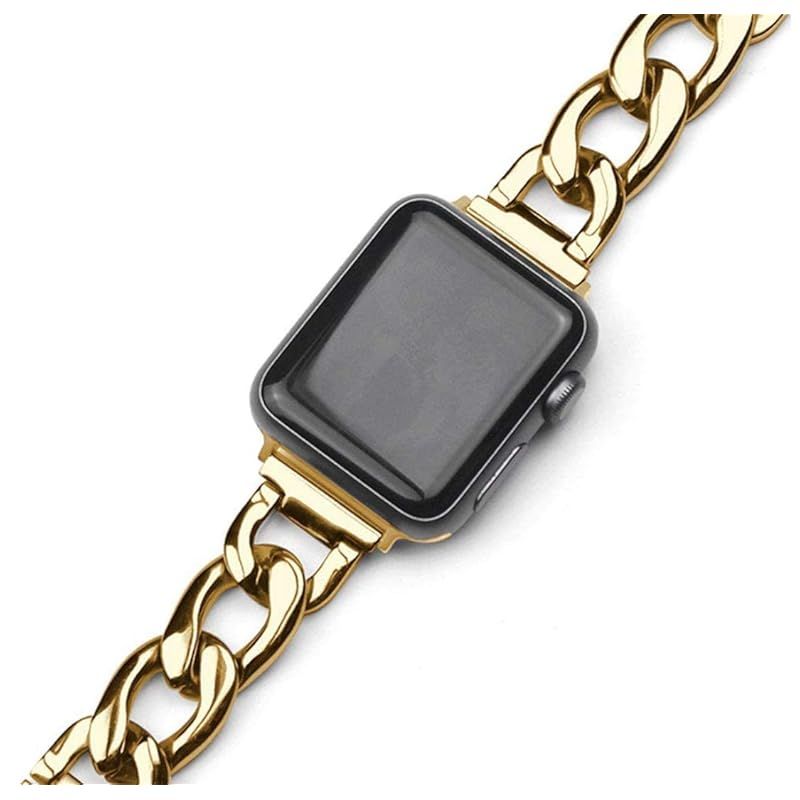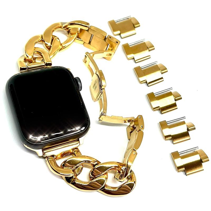 Royce&Roland Apple watch チェーンバンド バタフライバックル おしゃれ アップルウォッチ 時計 バンド (ステンレス/シルバー) レディース メンズ ギフト プレゼント (44mm 45mm 46mm 49mm, ゴールド) 1