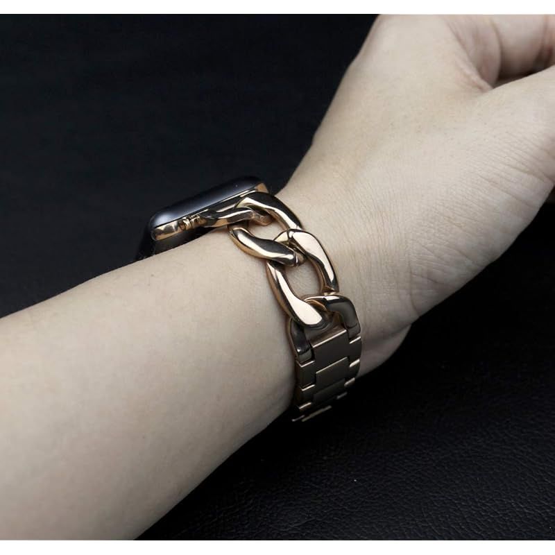 【全機種対応】対応機種:Apple Watch Series 11 , 10 , 9 , 8 , 7 , 6 , 5 , 4 , SE ,Ultra 3.2.1 /サイズ:40 . 41 . 42 . 44 . 45 . 46 . 49mm対応 / ご希望のサイズをお選びください。 / 付属品:輸送用ボックス、コマ調整説明書 ※アップルウォッチ本体は付属しません。※ゴールドカラー、ピンクゴールドカラーはチェーンが重なり合う部位は塗装が薄れシルバーに近い色味となりますが、不良品ではございません。装着時には露出しない部位となります。