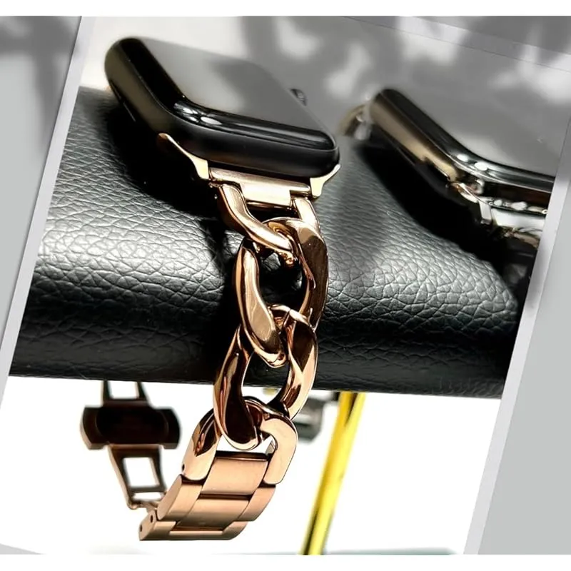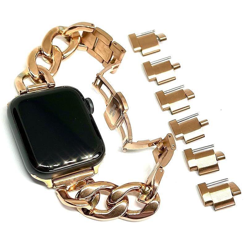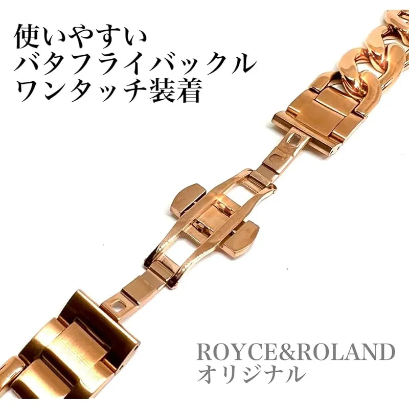 Royce&Roland Apple watch チェーンバンド バタフライバックル おしゃれ アップルウォッチ 時計 バンド (ステンレス/シルバー) レディース メンズ ギフト プレゼント (44mm 45mm 46mm 49mm, ピンクゴールド) 0