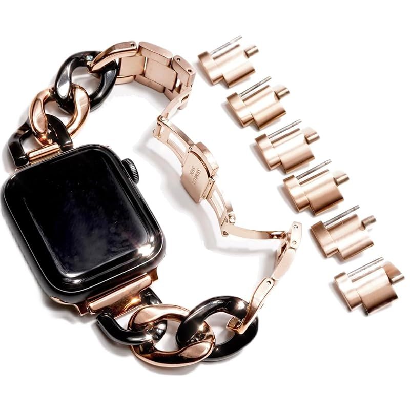 【全機種対応】対応機種:Apple Watch Series 11 , 10 , 9 , 8 , 7 , 6 , 5 , 4 , SE ,Ultra 3.2.1 /サイズ:40 . 41 . 42 . 44 . 45 . 46 . 49mm対応 / ご希望のサイズをお選びください。 / 付属品:輸送用ボックス、コマ調整説明書 ※アップルウォッチ本体は付属しません。※ゴールドカラー、ピンクゴールドカラーはチェーンが重なり合う部位は塗装が薄れシルバーに近い色味となりますが、不良品ではございません。装着時には露出しない部位となります。