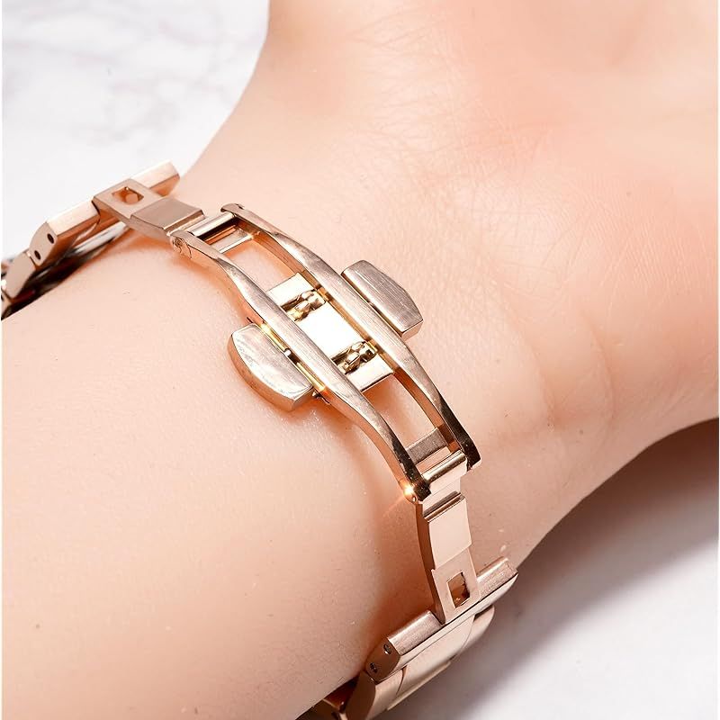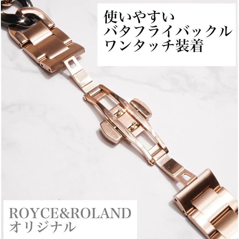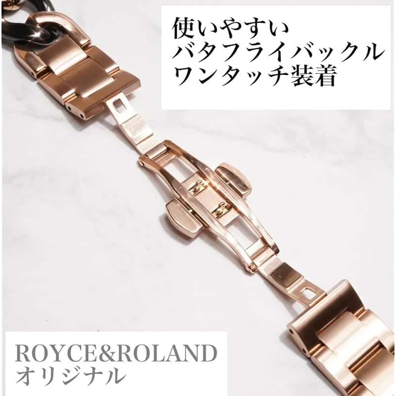 Royce&Roland Apple watch チェーンバンド バタフライバックル おしゃれ アップルウォッチ 時計 バンド (ステンレス/シルバー) レディース メンズ ギフト プレゼント (44mm 45mm 46mm 49mm, ピンクゴールド/ブ 0