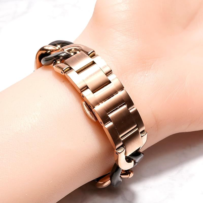 【高級感溢れるバンドで華やかに】チェーンベルトがキラキラ輝くデザインで、一段と上品な雰囲気を演出します。手首につけるだけでオシャレ度がグッと上がり、着けていても違和感のない重さなので、ビジネスからカジュアルな場面まで幅広いシーンでお使いいただけます。