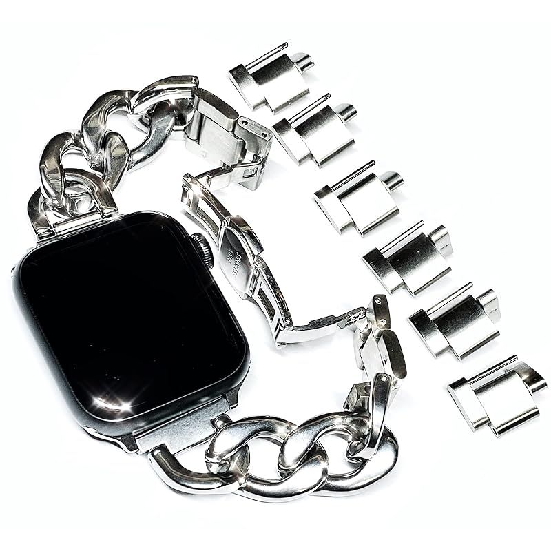 Royce&Roland Apple watch 高級 バンドチェーン (バタフライバックル/ステンレス シルバー) 長さ調整 工具不要/アップルウォッチ 鎖 ベルト (40mm 41mm 42mm) レディース メンズ/ギフト プレゼント (Series 1