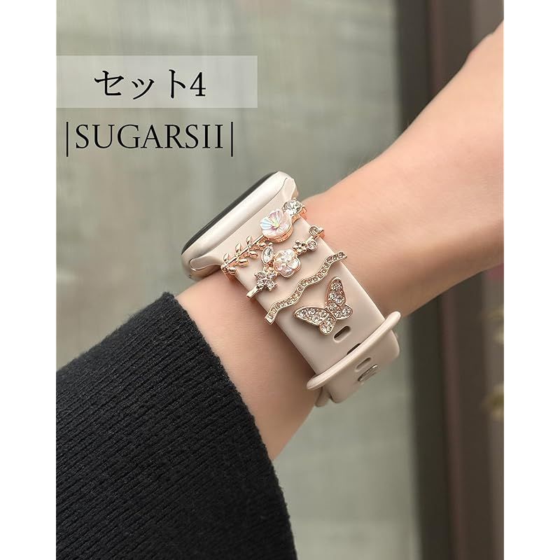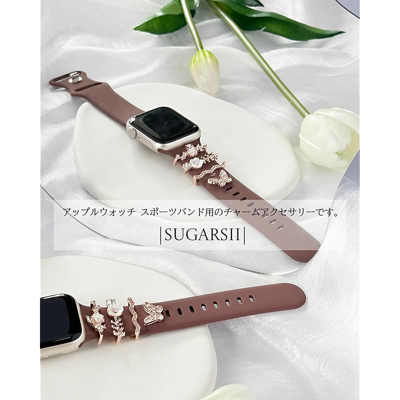 [SUGARSII] アップルウォッチ アクセサリー キラキラ 華やか かわいい レディース パール ジルコニア ハート 蝶 花 Apple Watch チャーム 38mm 40mm 41mm 42mm 44mm 45mm 46mm 49mm 1