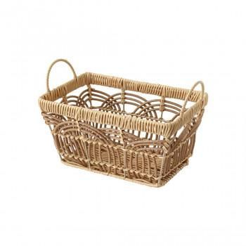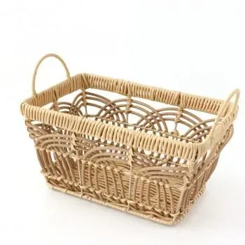アイアンにプラスチックを巻いた、天然素材風のバスケット。アイアンが重くしっかりとしているので、形が崩れず収納することができます。棚やテーブル周りの収納はもちろん、調味料ストッカーとしてもおススメです。