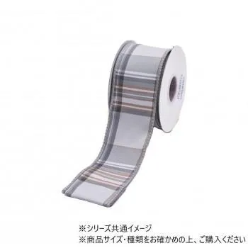 商品名:ワイヤーリボン プレイドチェックス TAFETTA DBLFUSED リボン GY 6.3cm 9600071