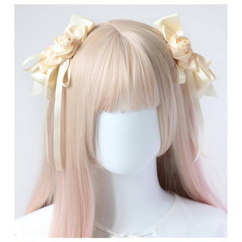 [トクとユウ] ゆめかわいい ゴスロリ 髪飾り 2点セット 女の子 バレッタ 薔薇 ヘアアクセサリー 森ガール 花 リボン お人形 おしゃれ 蝶結び 超可愛い コスプレ系 ガールズ イベント 通学 (イエロー) 1