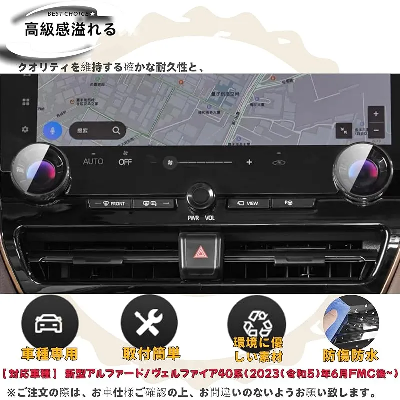 DodoxDIY 適用新型アルファード40系 ヴェルファイア 40系 アクセサリー センターコンソールエアコンノブカバー カスタムパーツ 専用内装グッズ ガラス鏡面 ピアノブラック 0