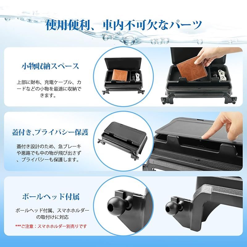 【蓋付き&プライバシー保護】蓋付き設計で、急ブレーキや悪路の走行でも、スマートフォンや小物が飛び出して運転の邪魔をすることがありません。カード類や貴重品などを収納しても、蓋を閉めれば外部から見えにくく、駐車時の目線対策にもなります。 ??