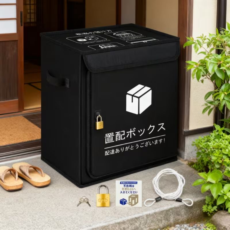 最新改良型配達ボックス 85L アウトドア 宅配ボックス 盗難防止設計 強化ロックフレーム 折りたたみ式 レンタル物件向け☆大感謝祭25%off 期間限定