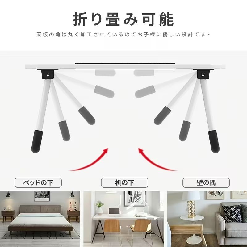 【家電】移動・折りたたみ可能 小型テーブルボード ベッド用 簡単多機能 小型テーブル 引き出し付き ホームオフィス デスク W字型脚 丸みを帯びた角テーブル🌸スプリングキャンペーン20%OFF
