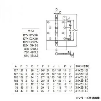 商品名:シロクマ キャノン二管丁番(左) 127×127 金 BS-102L