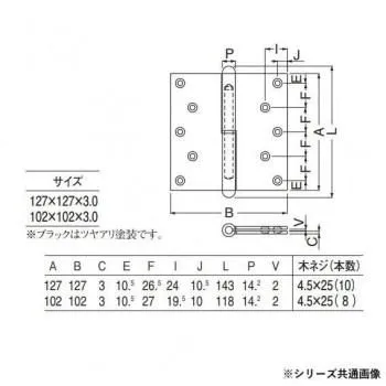 商品名:シロクマ キャノン二管丁番(右) 102×102 鏡面磨 BS-102R