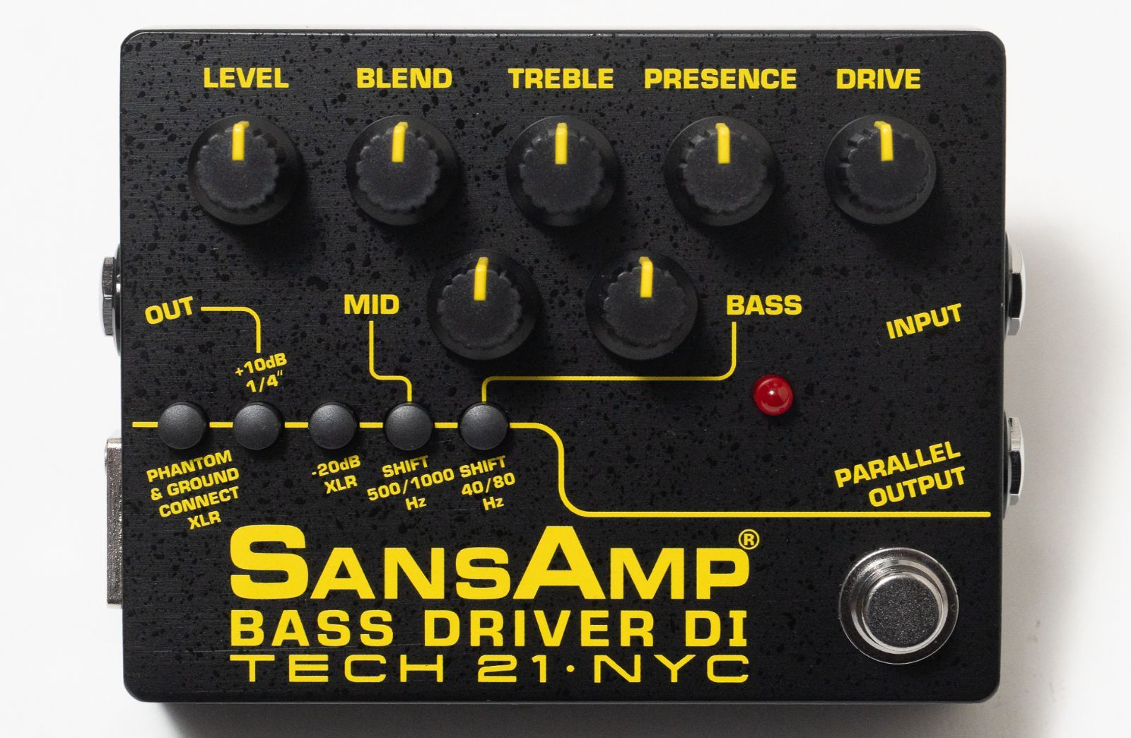 コントロール : DRIVE、LEVEL、BLENDアクティブPOST EQ BASS(±12dB)、MID(±12dB)、TREBLE(±12dB)、PRESENCE(±12dB) SHIFT40/80Hz スイッチ ON/40Hz、OFF/80Hz MID SHIFT 500/1000Hzスイッチ ON/1000Hz、OFF/500Hz XLR OUT PAD スイッチ ON/-20dB、OFF/0dB +10dB 1/4” スイッチ ON/0dB、OFF/-10dB PHANTOM & GROUND CONNECT スイッチ