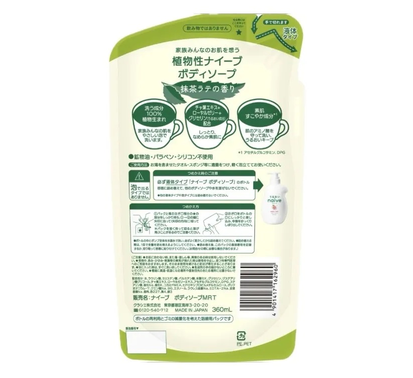 2袋セット ナイーブ 液体 ボディソープ 抹茶ラテの香り 詰替用 愛知北倉庫