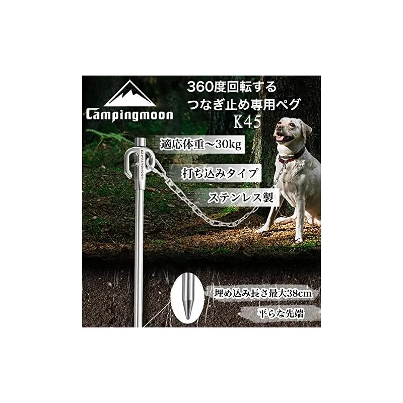 キャンピングムーン(CAMPING MOON) 係留用ポール 係留用ペグ ペット 大型犬用 ステンレス鋼420製 2点セット K45N-2P 45cm 固い地面にも打ち込める 360度回転
