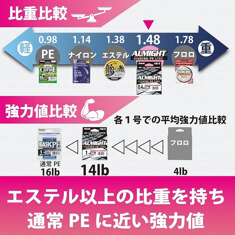 サンライン(SUNLINE) オールマイト 150m単品 ピンク 0.8号