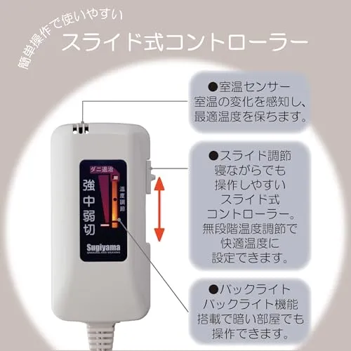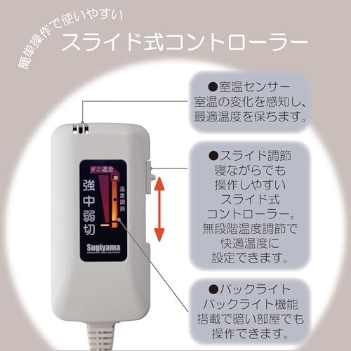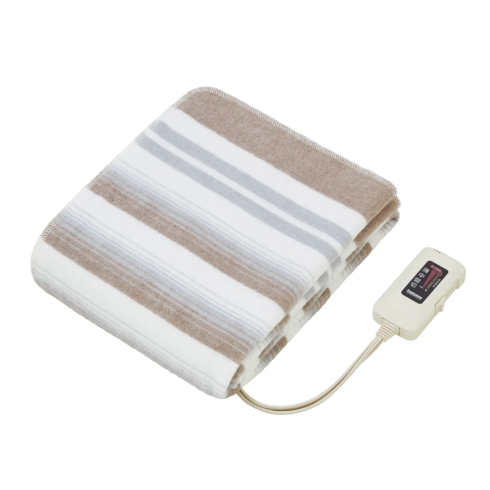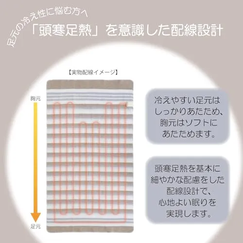 Sugiyama 電気毛布 日本製 電気しき毛布 140×80cm 丸洗いOK 頭寒足熱 ダニ退治 室温センサー スライド式無段階温度調節 NA-023S ボーダー柄(裏面ホワイト)暖房 節電 省エネ 電気代安いt