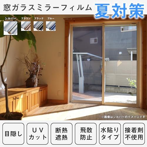KTJ 窓用フィルム ガラス飛散防止 窓断熱シート 窓断熱フィルム 窓遮熱シート マジックミラーフィルム 目隠しシート UVカット 紫外線カット 日差し対策 窓ガラスフィルム 防犯フィルム (シルバー, 60X500cm)t