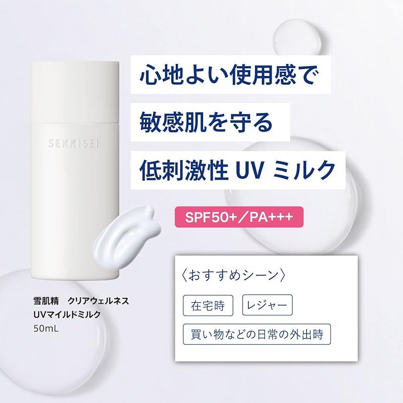 雪肌精 クリアウェルネス (敏感肌用) UVマイルドミルク 50mL SPF50+/PA+++ 低刺激 保湿 シミ