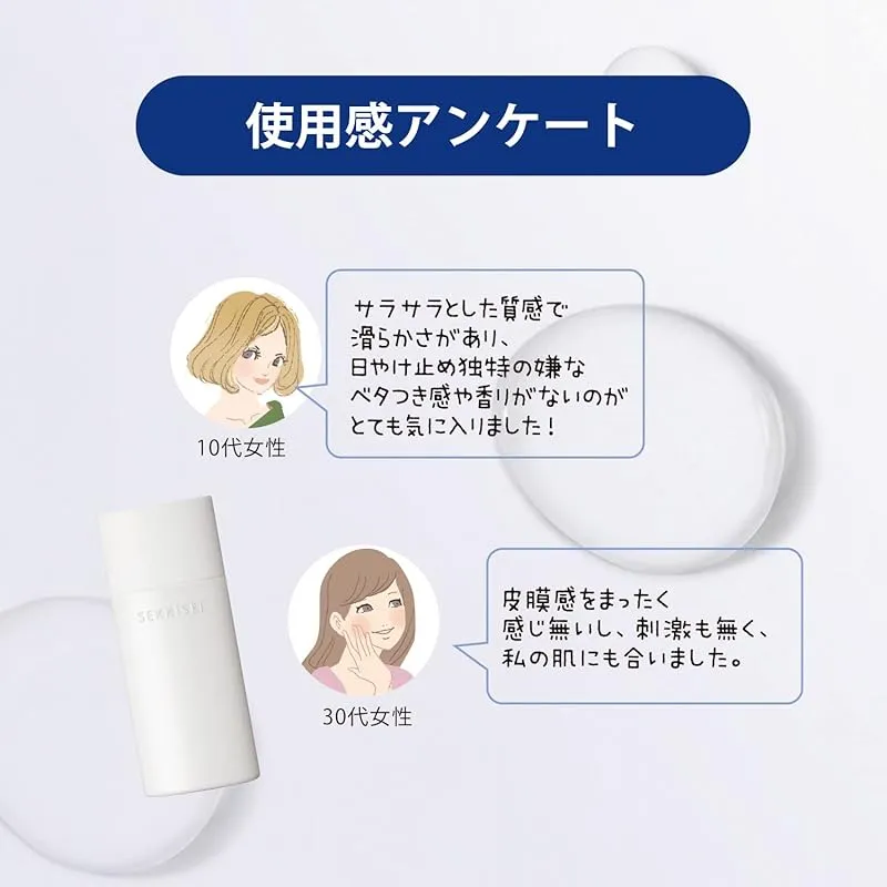 【海の環境に配慮した処方】一部の国・地域の規制に配慮した海に流れ出にくい処方です。 紫外線だけでなく、大気中の微粒子(花粉・PM2.5・ちり・ほこりなど)までブロック。化粧下地としてもお使いいただけます。ふだんお使いの洗顔料やボディソープで落とせます。 アレルギーテスト済み / 敏感肌のかたの協力によるパッチテスト済み / スティンギング(皮膚刺激感)テスト済み ※すべてのかたにアレルギーや皮膚刺激が起きない、刺激感がないというわけではありません。