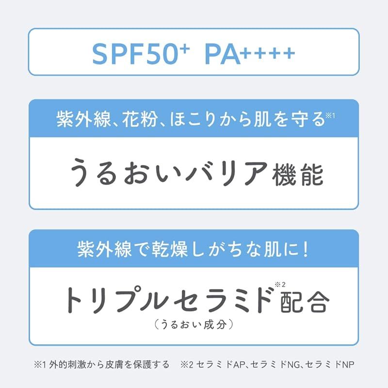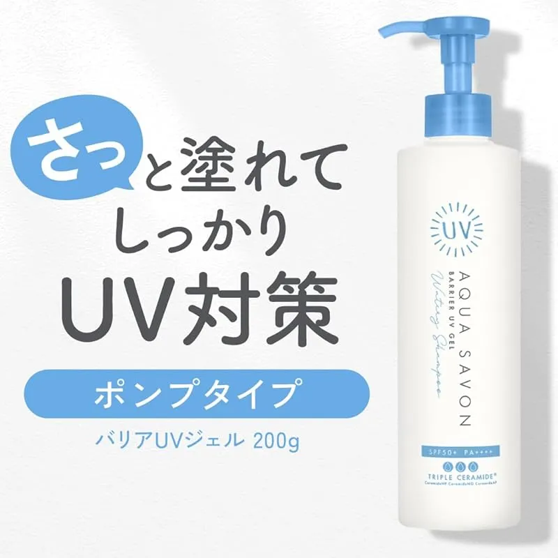 【商品概要】 ??紫外線、花粉、ほこりから肌を守る(※1) うるおいバリアUVジェル SPF50+・PA++++ からだ・顔用 ??家を出る前にしっかり対策! 大容量で使いやすい、200gのポンプタイプ ??人気No.1(※6) ウォータリーシャンプーの香り シャンプーの泡のように、みずみずしくて清々しい気分になる香り ??5つのフリー成分 パラベン・鉱物油・アルコール(エタノール)・石油系合成界面活性剤・動物由来原料 ??石けんで落とせる