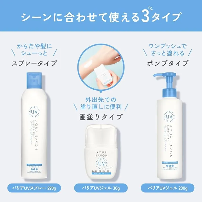 【商品詳細】 ブランド:AQUA SAVON(アクアシャボン) 商品種別:全身用日焼け止め 商品名:AQUA SAVON(アクアシャボン) アクアシャボン バリアUVジェル 22S ウォータリーシャンプーの香り 200g 製造元:AQUA SAVON(アクアシャボン) 発売日:2022年02月10日 商品内容:200グラム