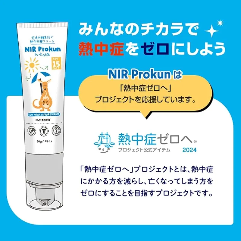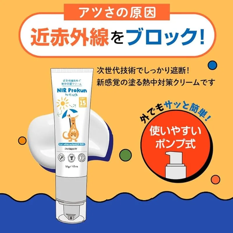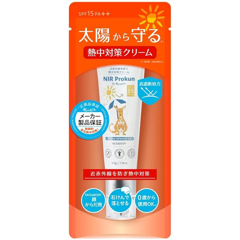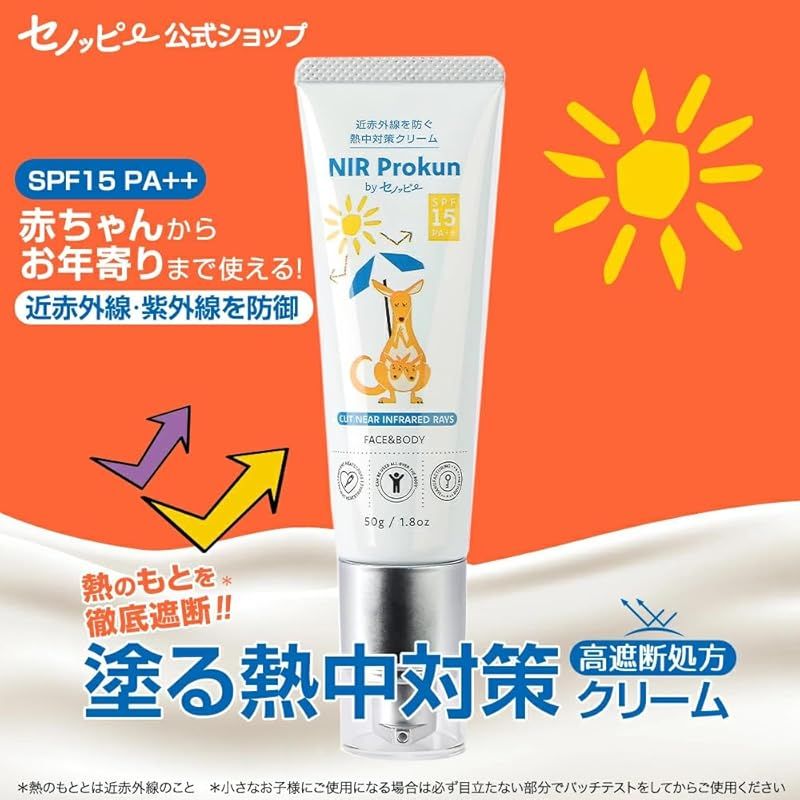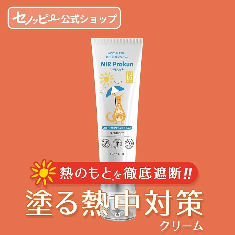 【商品概要】 NIR Prokun セノッピー 熱中対策クリーム50g SPF15 PA++ 日焼け止め 全身用 夏 紫外線 遮断 UVカット ポンプ式 無香料 石鹸落ち エヌアイアール プロックン