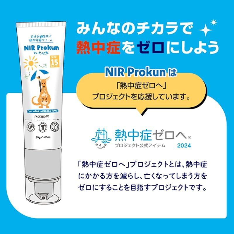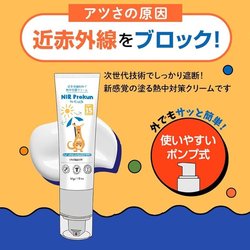 NIR Prokun セノッピー 熱中対策クリーム50g SPF15 PA++ 日焼け止め 全身用 夏 紫外線 遮断 UVカット ポンプ式 無香料 石鹸落ち エヌアイアール プロックン 熱中症 (1)