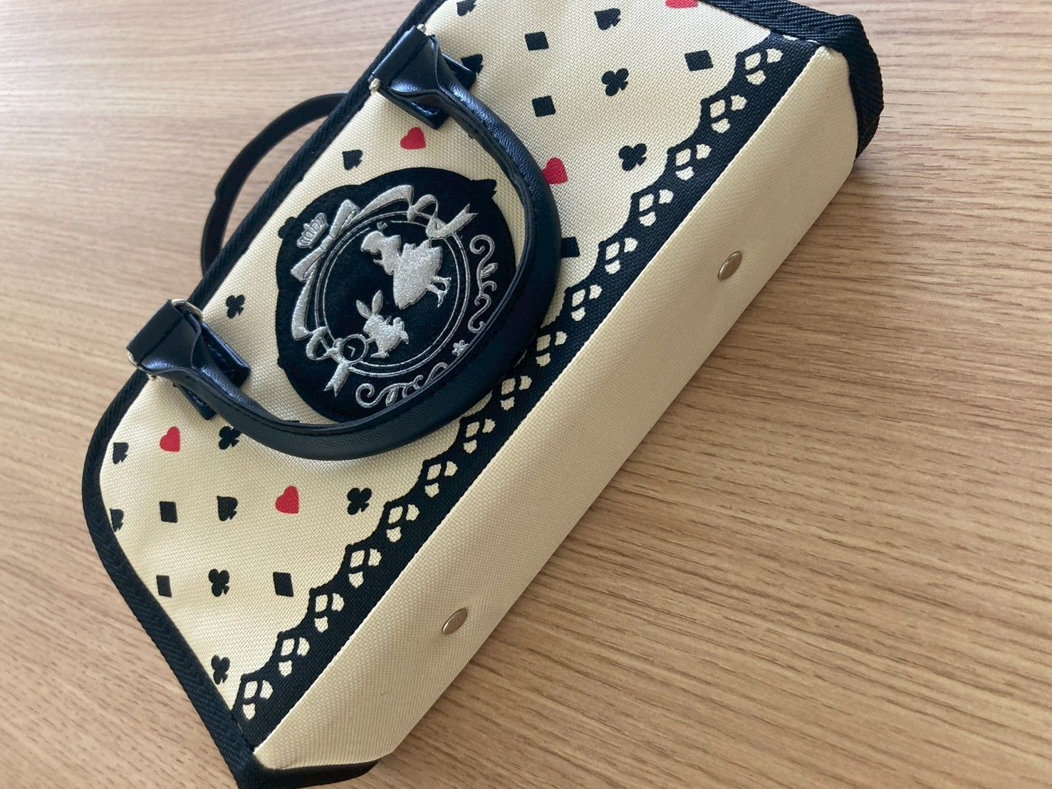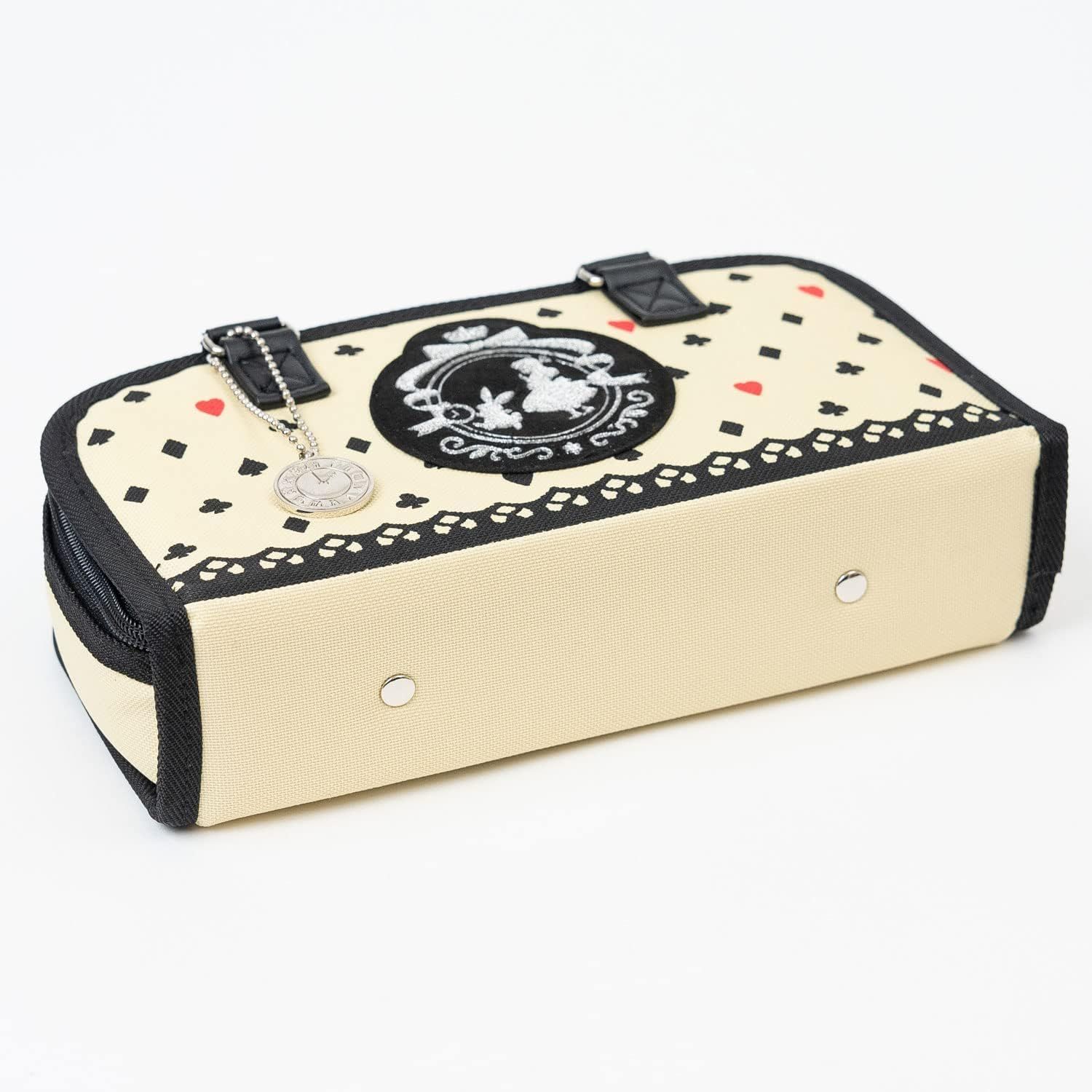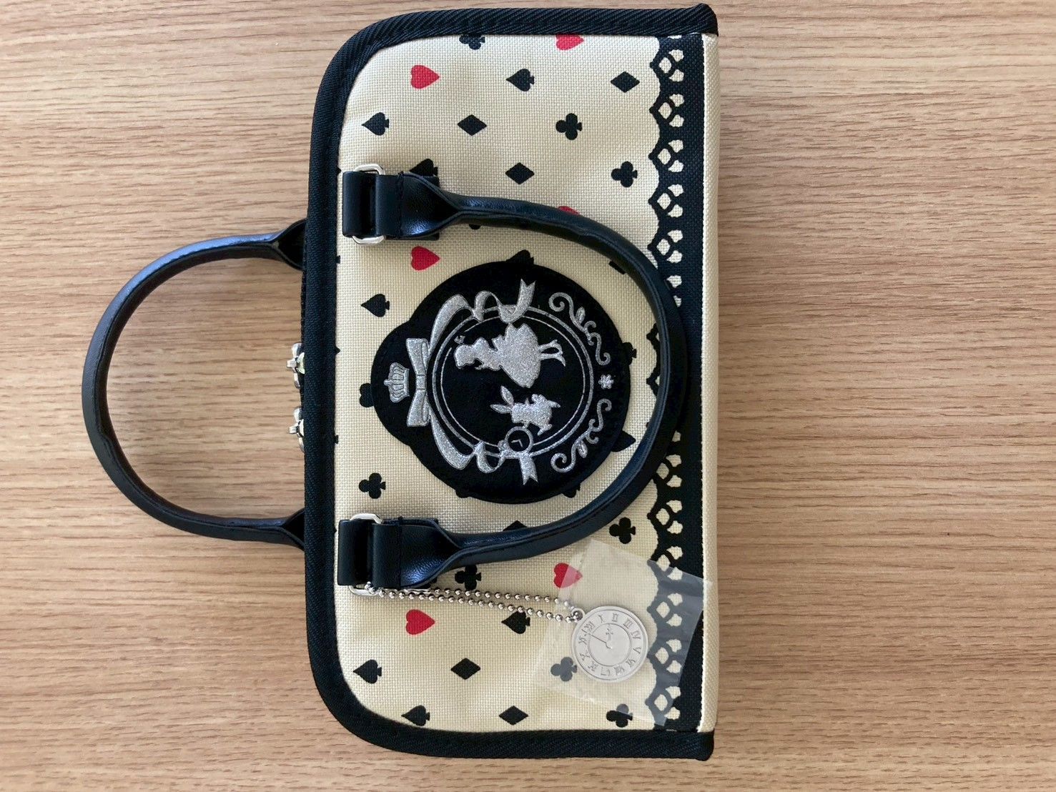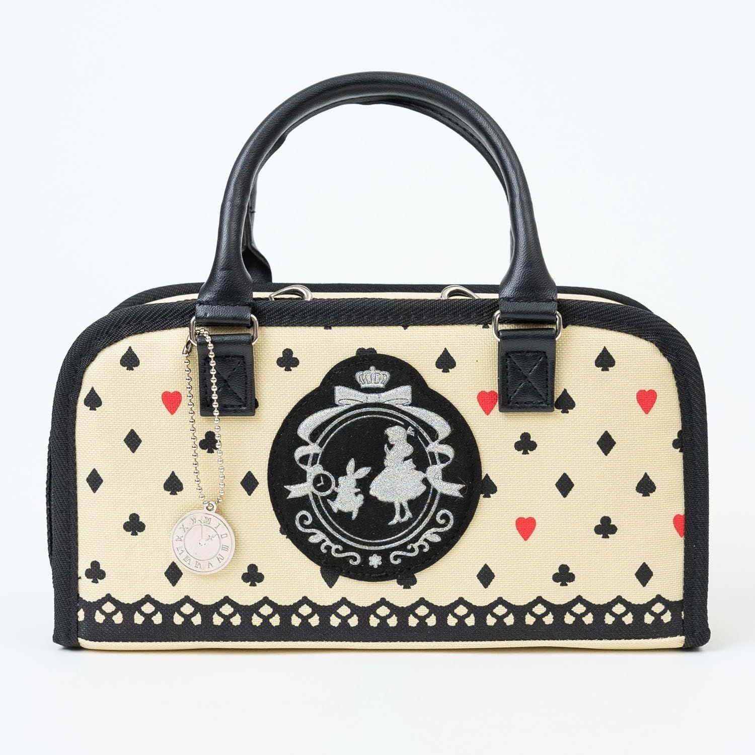 不思議の国のアリスをモチーフした 裁縫バッグ。 アリスとうさぎのワッペンや 懐中時計をイメージしたワンポイント アクセサリーが可愛いソーイングセット。