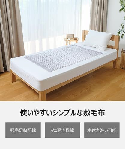 コイズミ 電気毛布 敷毛布 丸洗い可 頭寒足熱配線 ダニ退治 抗菌防臭 130×80cm KDS-40241t