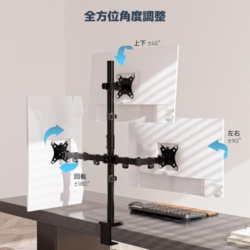 WORLDLIFT モニターアーム 3画面 17?35インチ対応 800mm ロングポール PC液晶ディスプレイアーム 耐荷重10kg グロメット式&クランプ式 角度調節 VESA対応 75x75/100x100mmt