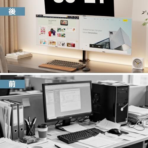【高さ80CMのロングポール】モニター縦置きスタッキングに最適: センターロッドを長くすることで、人間工学に適した清潔で垂直な設置が得られます。トリプルモニターアームを積み重ねることで、最大の画面空間を得ることができ、姿勢を改善することができます。ビデオ編集、コーディング、マルチタスクなど、プロ並みの作業が可能です。