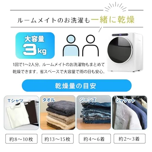 【コンパクトで大容量・高級感】最大容量3kgで一度に3人分の乾燥が可能、1人暮らしの方から23人のご家族向けに幅広くご活用頂けます。お部屋のインテリアとしても高級感のあるデザインです。