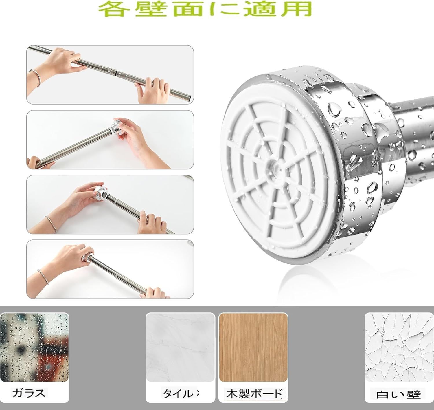 【簡単な取り付け】突っ張り棒を取り付けるのはくぎ/ネジ/パンチ等全部必要なく、突っ張るだけで簡単に設置できます。そして、壁に穴がある心配もなく、壁に痕跡も残さないので、賃貸住宅におすすめです。他に、つっぱり棒は自由に長さが調節でき、違う場所に合わせて取り付けられます。使用しない時に取り外すことも可能です。生活に便利な用品として欠かせないです。