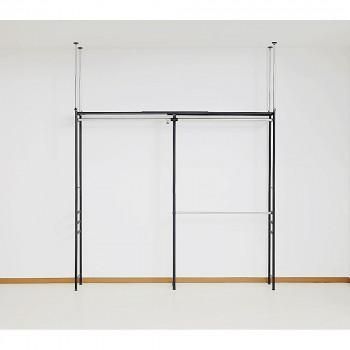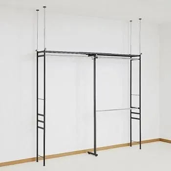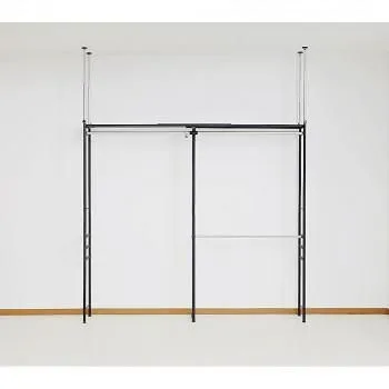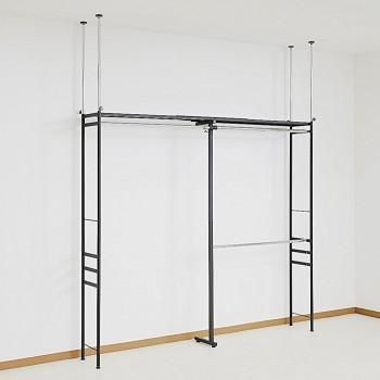 縦にも横にも伸縮するので設置場所を選びません。天井面の突っ張りパイプは前後それぞれ別に伸縮するので、下がり天井(梁)など、前後に段差があってもしっかり設置出来て安全です。