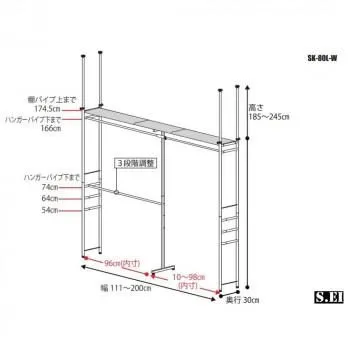 ツッパリクローゼットハンガーラック ロータイプ ワイド シルバーメタリック SK-80L W(BK)