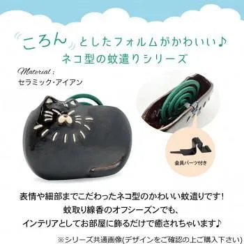 縦型で省スペースに使えます。ころんとしたフォルムで表情や細部までこだわって作った、ネコ型のかわいい蚊遣りです。付属の金具パーツを使って蚊取り線香を立てて使うことができます。お洒落でカワイイので、蚊取り線香のオフシーズンでもお部屋のインテリアとして飾っておくことができます。
