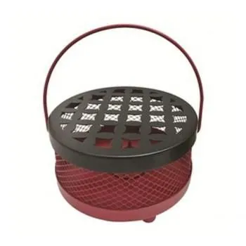 持ち手つきで持ち運びやすいです。すかし彫りのように、フタの部分に日本の伝統的な紋様をあしらった蚊取り線香ホルダーです。折って短くした蚊取り線香も使用できる金属パーツ付きです。インテリアにはもちろん、キャンプやピクニック、ガーデニングなどにもおすすめです。通常サイズの蚊取り線香が使用できます。